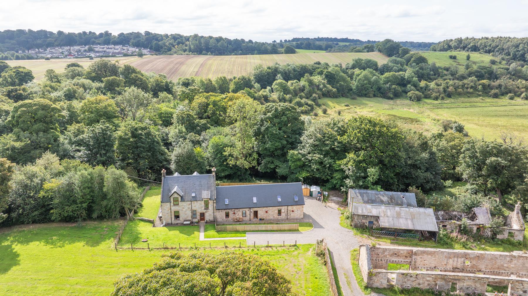 **** UNEXPECTEDLY BACK TO THE MARKET *****This converted steading forms part of a small development and is attached to the original Shirva Farmhouse. The property has been completely renovated and rebuilt to provide a beautiful home whilst retaining the façade of a traditional stone building but completed with a modern and impressive specificationThe accommodation, which is split level, comprises : entrance hallway featuring oak hardwood flooring and timber frame double glazed windows allowing light to flood in, a large open plan kitchen/family/living room with French doors leading to the rear garden. Bathroom, useful utility room, and a large double bedroom or separate reception roomStaircase to the upper level, where there are two large double bedrooms, the master being en suite and benefitting from a walk in dressing room. There is also another bathroom on this floorThe rear garden has been substantially landscaped with timber fencing and trees, providing privacy. To the front, a gravel driveway provides off street parking, There is also an electric car charge point.This home has stunning views across surrounding fields to the Campsie Hills and beyond. The nearby picturesque old town of Twechar sits next to the Forth and Clyde Canal and offers local shopping and services including a bowling club, and Post Office. Kilsyth and Kirkintilloch offer a wider range of amenities, including excellent schooling, shops, supermarkets, restaurants and sports centres. Local train stations can be found at Croy and Lenzie.Council Tax Band FEPC rating B