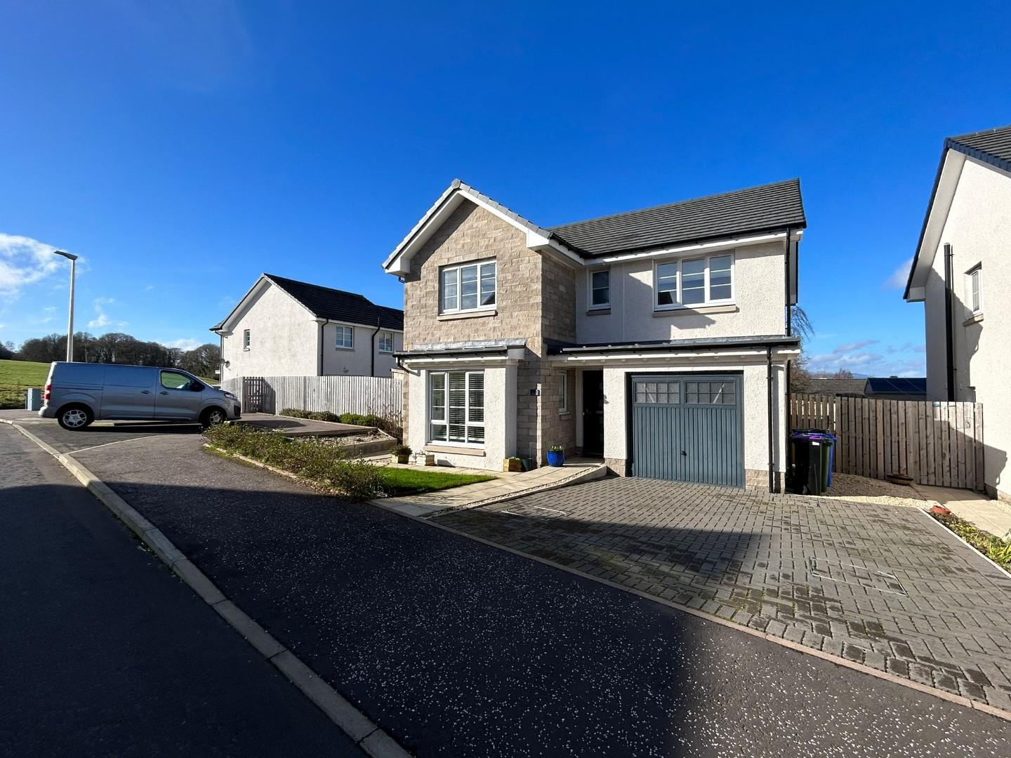 Enjoying a premier position within this admired development built by Dawn Homes in the historic village of Kippen, this four bedroom family home offers thoughtfully laid out and well finished accommodation benefitting from the tranquillity of a rural location yet the convenience of all local amenities and excellent road links to Stirling and commuter links to Edinburgh and Glasgow.The accommodation is over two floors and comprises: Downstairs there is an Entrance Hallway providing access to the Lounge on your immediate left, a Cloakroom with large under stairs Cupboard and open plan Dining Kitchen with Utility Room attached facing to the rear of the property. There is a substantial integrated single car garage which can be accessed through the Entrance Hallway.On the Upper level there are Four Double Bedrooms (master en-suite) with built in wardrobes, good sized Family Bathroom and access to the Loft. Heating is provided by an air source pump. The downstairs is under floor heating and the upstairs has radiators.The highly sought after and well-established residential village of Kippen is located 10 miles from Stirling, commanding enviable views over some of Scotland’s finest scenery. This charming village offers daily essentials with a local shop and post-office, hairdresser, medical practice, farm shop with café and butcher and two gastro pubs.There is a local primary school and Kippen is within the catchment area for nearby Balfron High School or Stirling High School. Kippen is at the heart of historic Stirlingshire and the famous Trossachs, one of Scotland’s most beautiful areas of countryside, with lochs and hills providing a wide choice of walks and nature trails. With cycling routes, fishing, boat trips, a local distillery, golf courses and nearby The Blair Drummond Safari Park and Go Ape Forest Adventure Park, there is something for everyone!EPC rating BHome report value £360,000Council Tax Band F